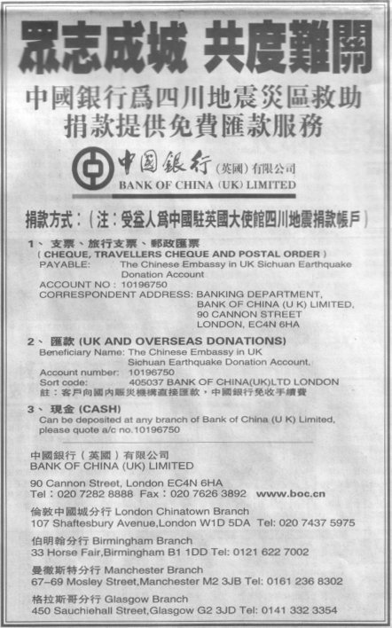Click on the following link for the British Red Cross China Earthquake Appeal: